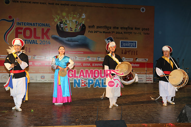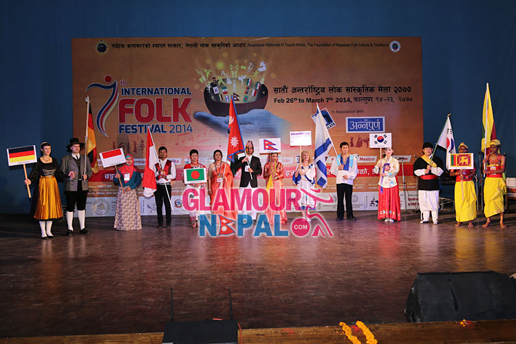 7th International Folk Festival was held in Nepal on 27 February, 2014 at Academy Hall, Kamladi, which was organized by Everest Nepal Cultural Group. This Festival will be celebrating in different places of Nepal from 26 Feb to March 7, 2014. Bangladesh, Germany, Ghana, India, Indonesia, Nepal, Iran, Israel, Korea, Mexico and Sri Lanka are participating in this Festival. Here are the pictures of Opening Day at Kathmandu.