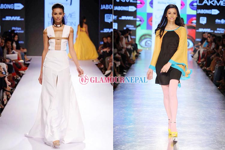 Aastha Pokharel was seen successfully walking down the runway of Lakme fashion week summer/resort 2015 wearing Anamika Khanna, Wendell Rodriks and Nikhil Thampi.