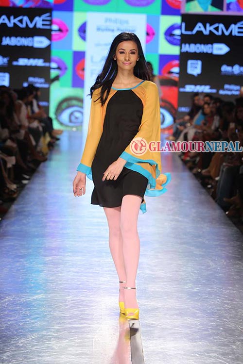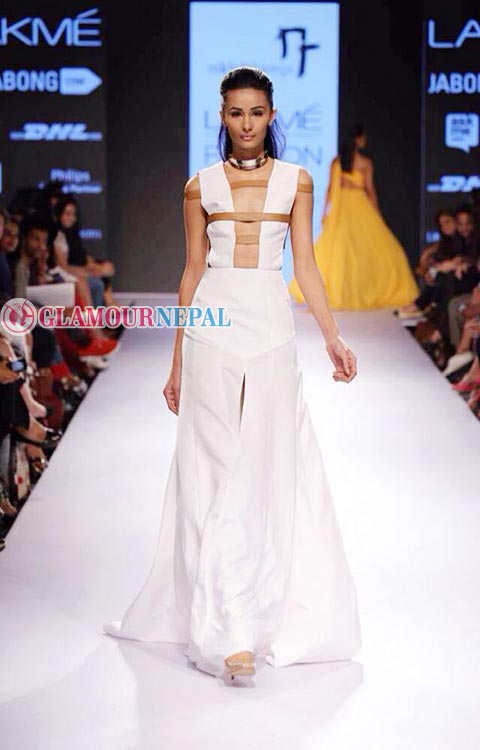 The summer / Resort 2015 edition of Lakme Fashion week that took off on 18th of March 2015 ended on Sunday March 22nd 2015 saw Nepali Super Model Aastha Pokharel walking on the runway.