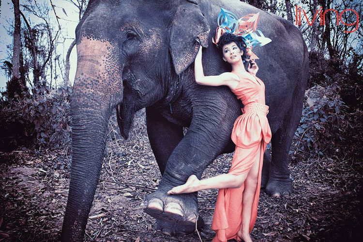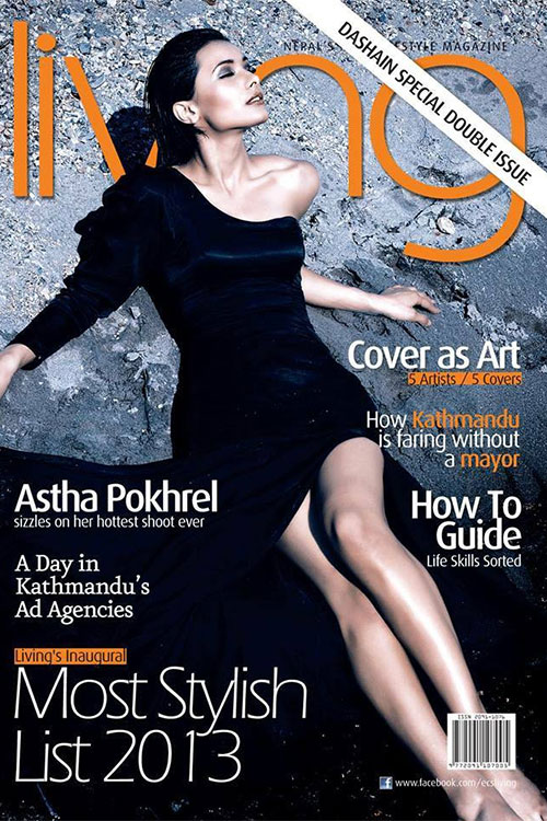 Astha Pokharel, Cover of living magazine 2013 | Photo by Sanjog Rai, Outfits: Subexya Badel, Stylish : Bipen Gurung, Hair and Make up : Suman Gurung