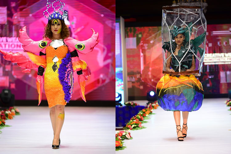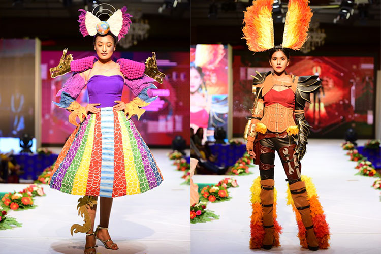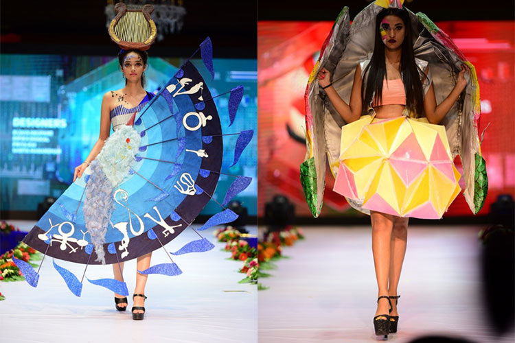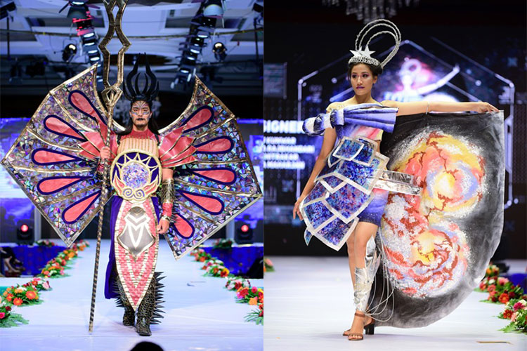 The real visual treat the event featured 21 magnificent creative designs and each design stood out as special was able to captivate the beholder. The designs were inspired from various futuristic elements mainly being hypothetical, imaginary and innovative. The dresses spotted came lively with various inspirations like science and technology, beetle, universal law of destruction, mutation, trans-humanism, a giant rainbow serpent, online games, sea turtle, music, spaceship, army robot, gold and silver, ice kingdom, alien gamer and many more.