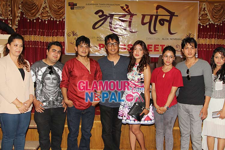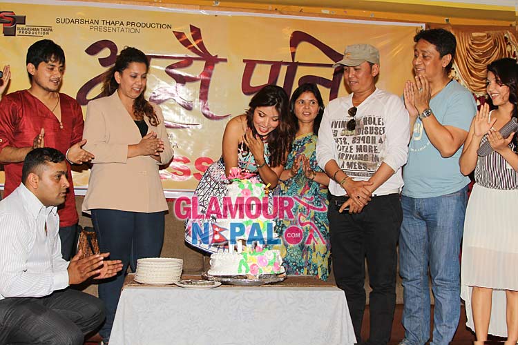 Actress Pooja (Puja) Sharma celebrated her birthday on the press meet of Nepali Movie “AJHAI PANI”. She is playing main actress role in this movie. The Movie is being directed by Alok Nembang and Produced by Sudarshan Thapa.