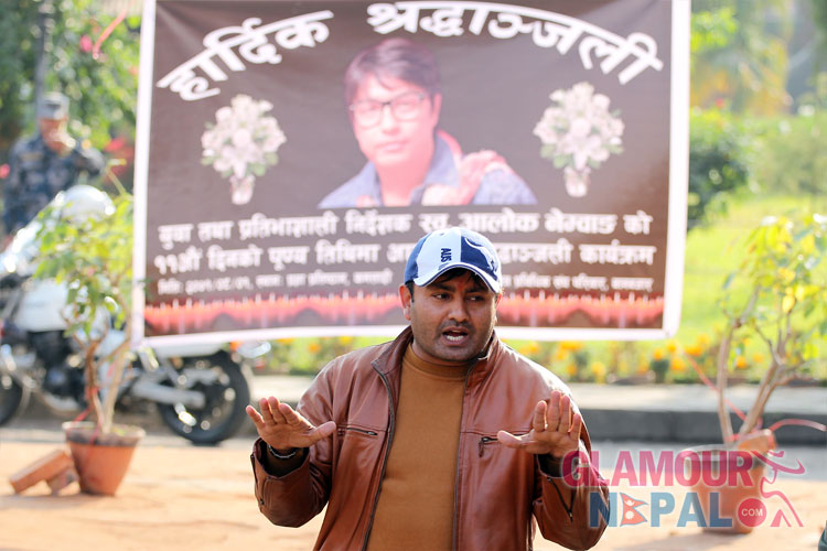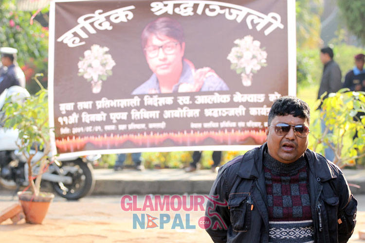 Nepal Film Technician Association (NEFTA) organized a 11th day death ritual ceremony to pay tribute to late Film director Alok Nembang. Very few members from the film fraternity were present in the ceremony held at Nepal Academy Hall in Kamaladi. Among them, most of the actors and models were those who were introduced by late Film Director Nembang in his movies and music videos.