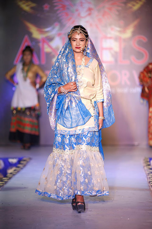 Recently the far west city of Nepal, Dhangadi witnessed a fashion event called Angels on the floor. Showcased on the runway set at the premises of Hotel Sathi, Dhangadi, Four round of fashion presentation took off with the cultural and ethnic dresses of Nepal.