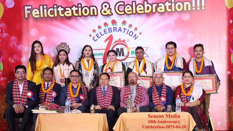 Season media, one of the leading beauty pageants organizing team has celebrated its tenth year anniversary of its establishment. To mark the celebration, it has showcased a fashion show and a felicitation event, where various personalities from different fields were been honored for their achievement and contribution in their related field. The chief guest of the event Honorable Minister for Energy, Water Resources and Irrigation Barshaman Pun felicitated the people.