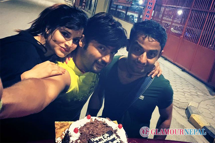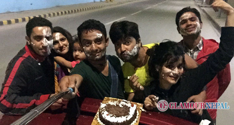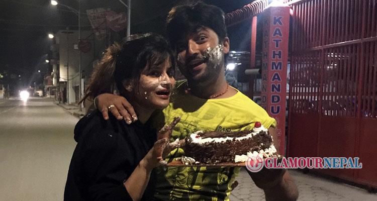 The couple (Actor Aryan Sigdel and Sapana Adhikari) celebrated their first marriage anniversary at midnight on road of capital. On Saturday night Aryan along with friends walked out of the house. They cut the cake at midnight at Naxal.