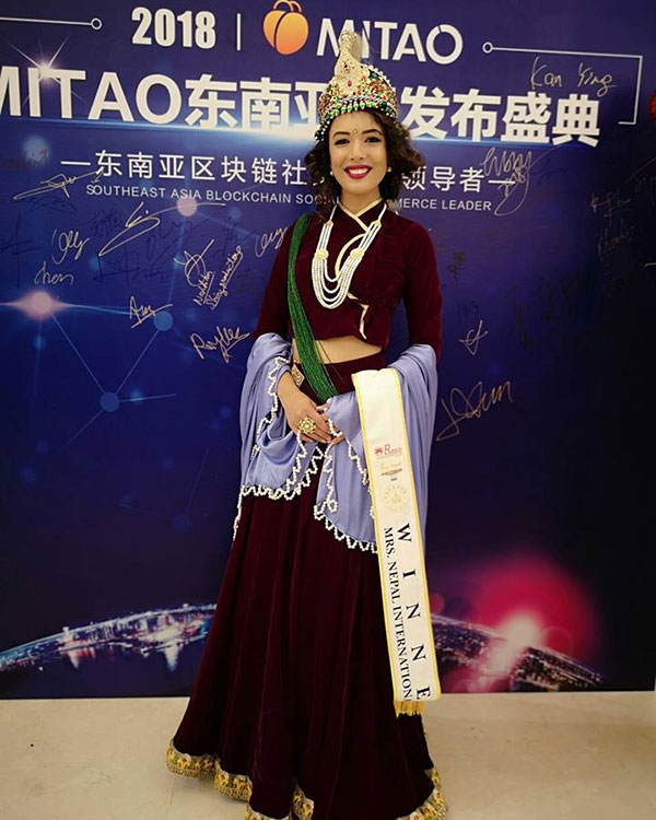 while Eliza Maharjan is the winner of Mrs. Nepal Glam 2018 organized by Glam World entertainment Pvt. Ltd. All the three queens of the respective competitions were been awarded with the opportunity to represent Nepal at the 12th edition of TKS Mrs. International pageant by Ribbon entertainment Pvt. Ltd. And all the necessary preparation related to the international participation is coordinated and managed by Ribbon Entertainment.