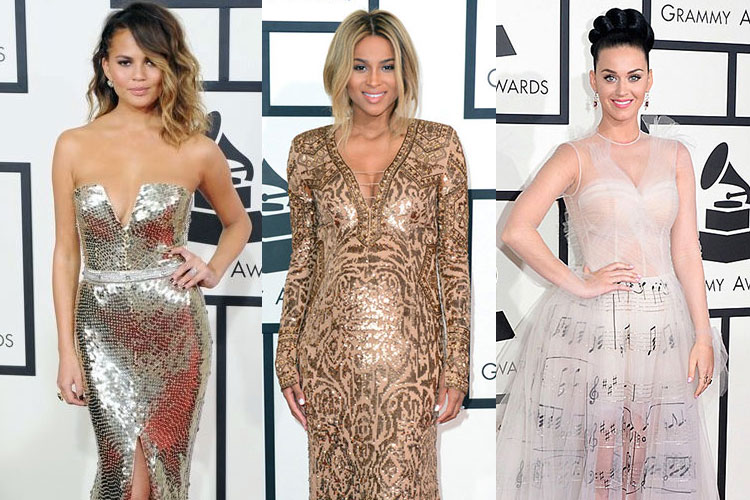 Katy Perry’s looks by designer Valentino was one of the most praised looks at the Grammys. The Couture gown was embellished with musical notes which matched the singer’s style and sophisticated persona .