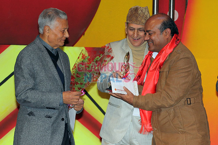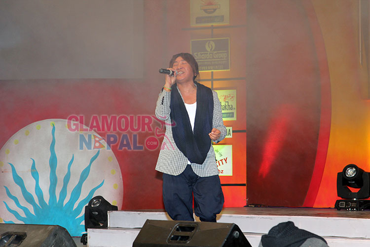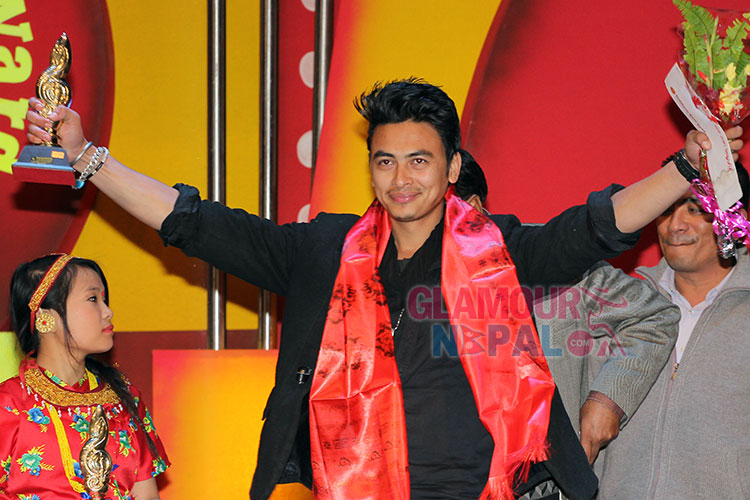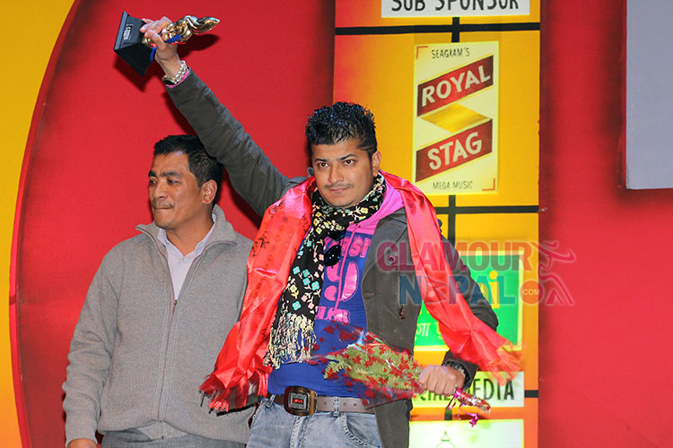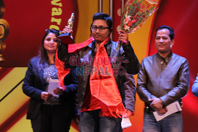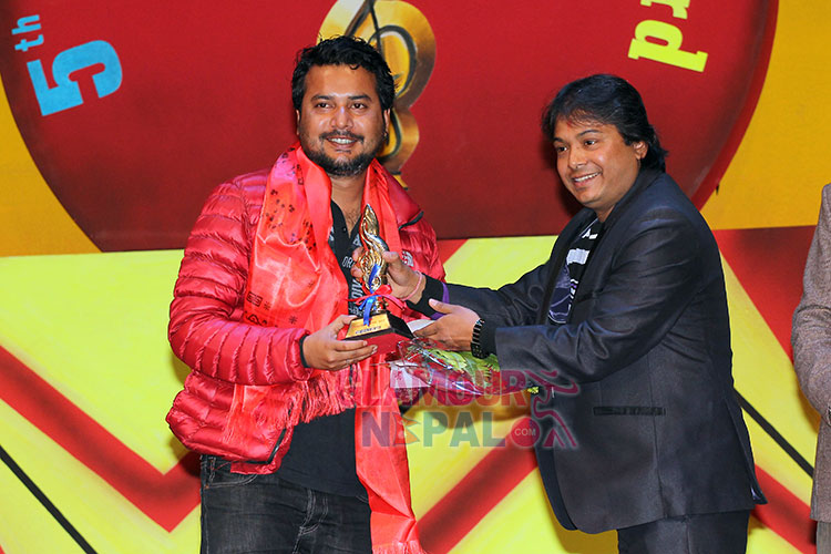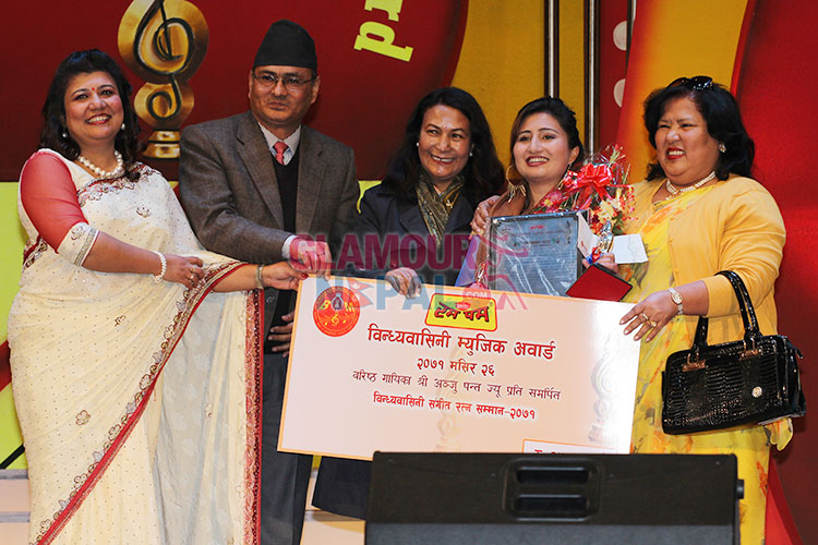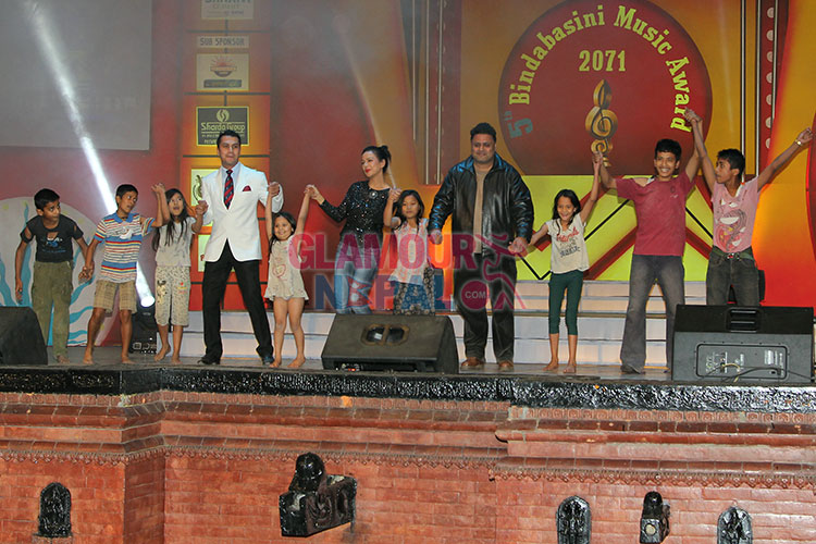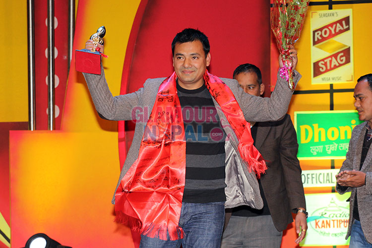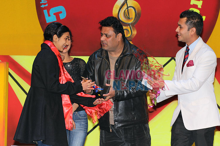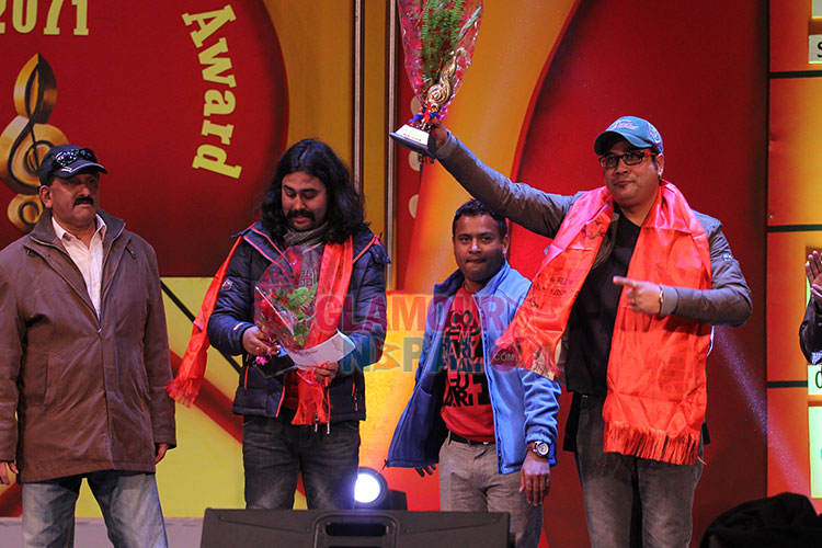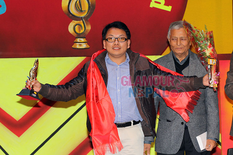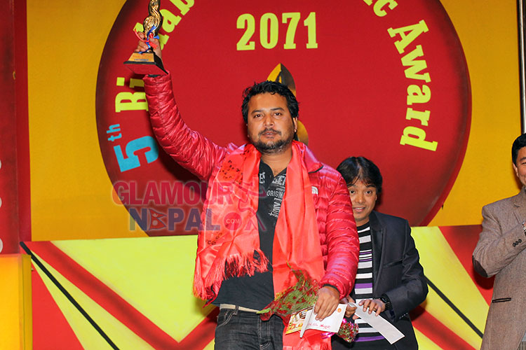 Deven Giri’s Album “The Pen and Deven” won the Best Album of The Year Award at 5th Bindabasini Music Award 2071, Organized by Bindabasini Music at Army Officers Club, Kathmandu on 12 December 2014 (26 Mangsir 2071), Bindabasini Life Time Achievement award honored to lyricist Dinesh Adhikari, likewise, Bindabasini Music Journalism honored to Nawaraj Lamsal and Bindabasini Music Ratna honored to Singer Anju Panta. All Photos by Maheswor Man Singh / Glamour Nepal