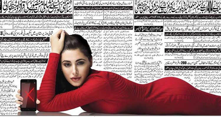 IANS | Islamabad – Bollywood actress Nargis Fakhri’s advertisement on the front page of leading Pakistani Urdu newspaper Jang has created a stir over social media where people have condemned it by calling the advertisement ‘cheap’ and ‘absurd’.