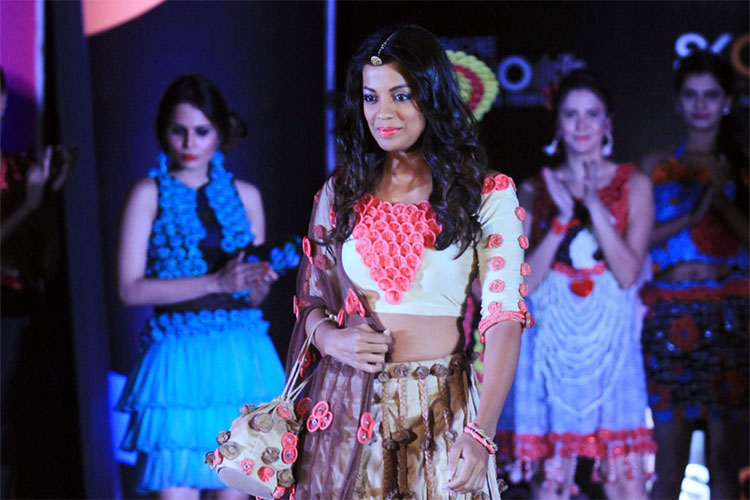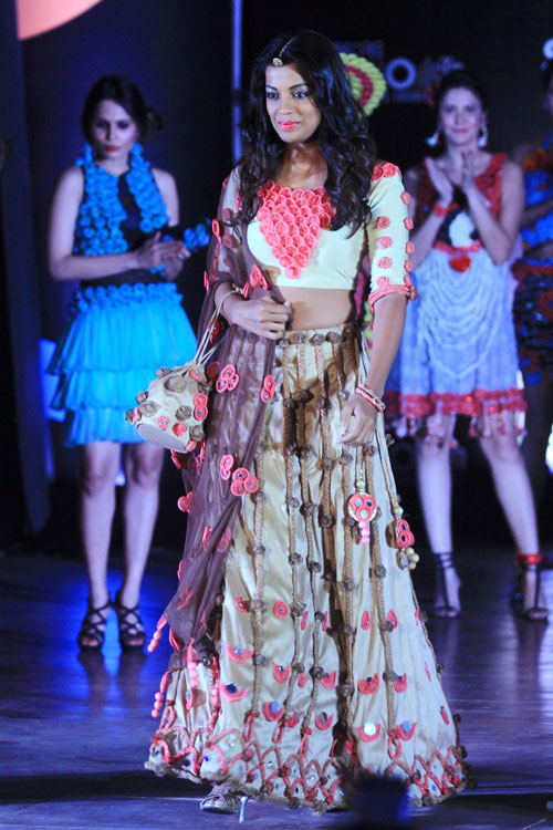 Only people who closely observed found that clothes were made from condoms. Bollywood actress Mugdha Godse appeared as a showstopper in the show who wore a lehenga choli made out of condoms.