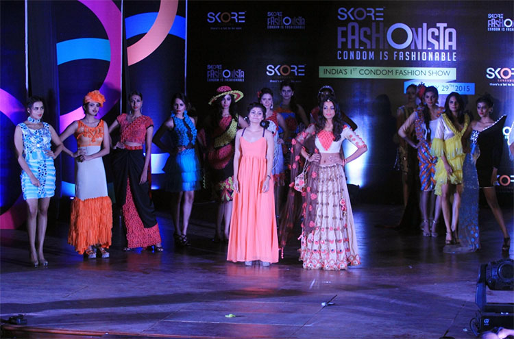 Skore Fashionista: Models walk on the Ramp, Wearing Condom Dresses