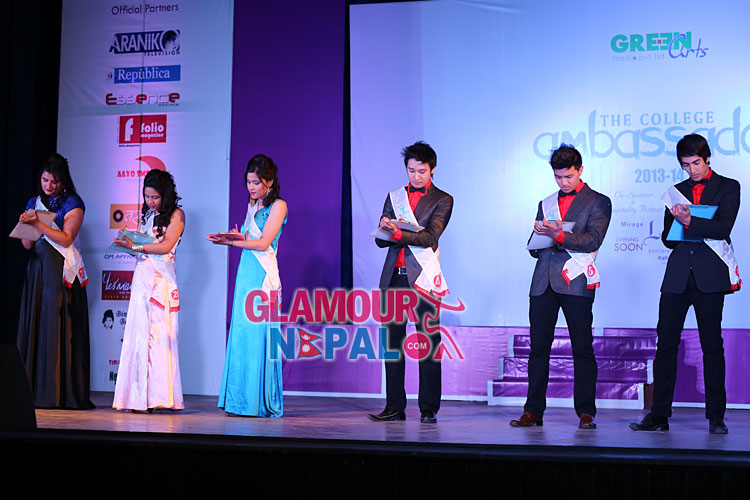 The sixth season of ‘The College Ambassador’ event has come to an end. With 19 contestants participating in the competition, the student of Ace institute of management, Akesh Tamrakar and the student of Golden Gate international college, Jyonita Karki became the new faces for ‘The College Ambassador 2013-14’. The event showcased at Rastriya Naachghar, Jamal on 22nd of March 2014 was been organized by Green Arts Media Pvt Ltd. Event choreographed by Anila Shrestha did saw the popular faces like Nagma Shrestha, Malina Joshi, Anup Bikram Shahi, Nirnaya Shrestha on the front row as the judges. READ MORE >>