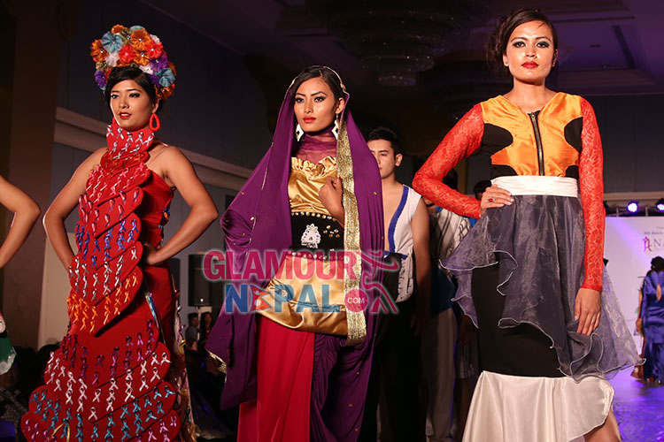 The event been Choreographed by Rojin Shakya had some thirty number of models, six being male and remaining ones were the females. The fifty percent of the models who walked on the runway were the student designers of Namuna College itself whereas the remaining fifty percent of the models comprised of aspiring and the professional ones. The last but the major part of the show was the sequence called creative legacy where 22 promising student designers put up their skill, creativity, innovative idea to bring some wonderful creative designs based on the awareness theme having a story and a message behind its aesthetics and composition. This was the sequence which brought art to make its voice heard and fantasy come alive. Designers’ innovation were been judged by the panel of judges which was been prejudged earlier during the swatch work presentation.