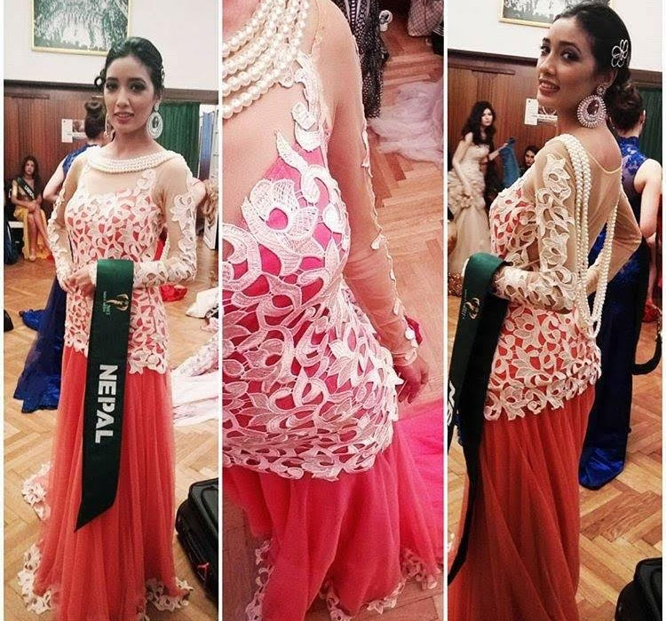 In one of the preliminary competitions named as long gown competition, Dibyata was found flaunting Pink colored gown by Uttam’s Creation which had very intricate detailing accessorized by pearl back necklace. The national costume in the event for Dibyata is been designed by Oodhni and accessorized by Kirat Ornaments by Sumnima Collection. Her national costume represents the multi rich ethnic group and culture. She would be wearing Haku Patashi which represents newari culture and ornaments representing kirat culture.
