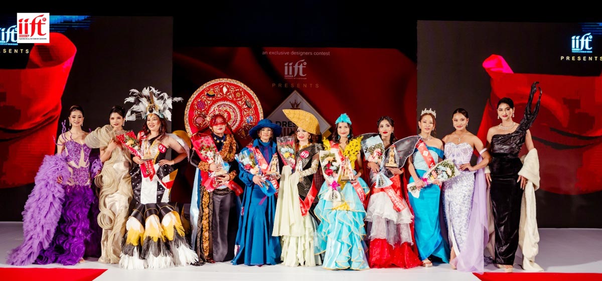 The Nepal Academy Hall, Kamaladi came alive with creativity, craftsmanship, and star power as ‘Dress To Impress’ Season 12, organized by the IIFT School of Fashion and Interior Designing, was successfully held with grandeur. Powered by the Sherpa Group, the fashion show cum competition featured the participation of over 100 fashion designing students, offering a dynamic platform for emerging designers to present and walk the runway wearing garments they individually designed and created.