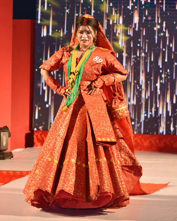 The second scene of the event saw brides of western culture where the designers brought ball gowns and princess line dresses explored in the fabrics like maya satin, silk, net, and lace fabric having embellishments of sequins, beads, and accessorized with crowns. Under this theme, Alisha Bista was declared the winner.