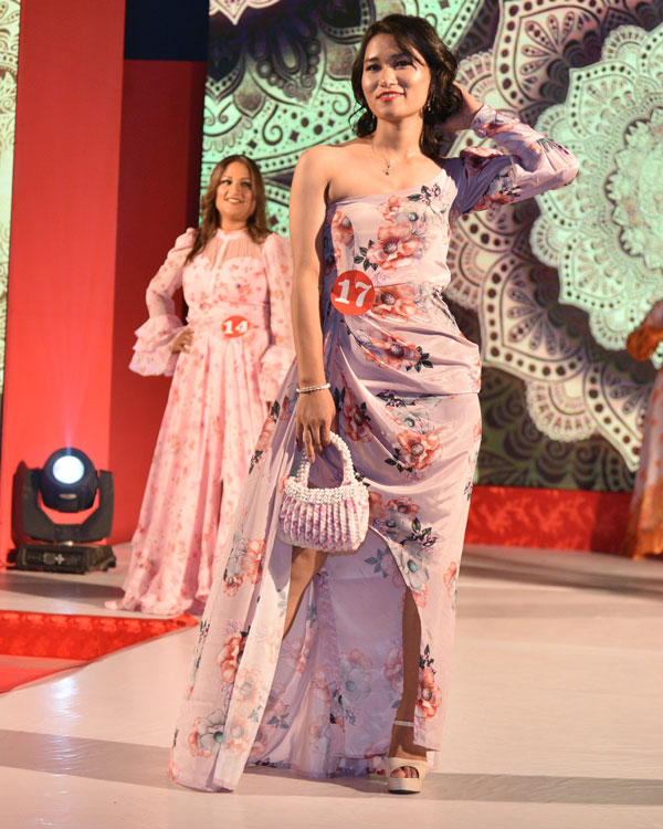 The event presented in four various rounds under various themes, the first showdown came up with maxi dress with floral prints where mostly floral printed fabrics like silk, satin, georgette, and rayon in bright and vibrant colors were been used to bring A line maxi dresses extended to the floor-length. Under this theme, Deepa Thapa Magar was elected as the winner.