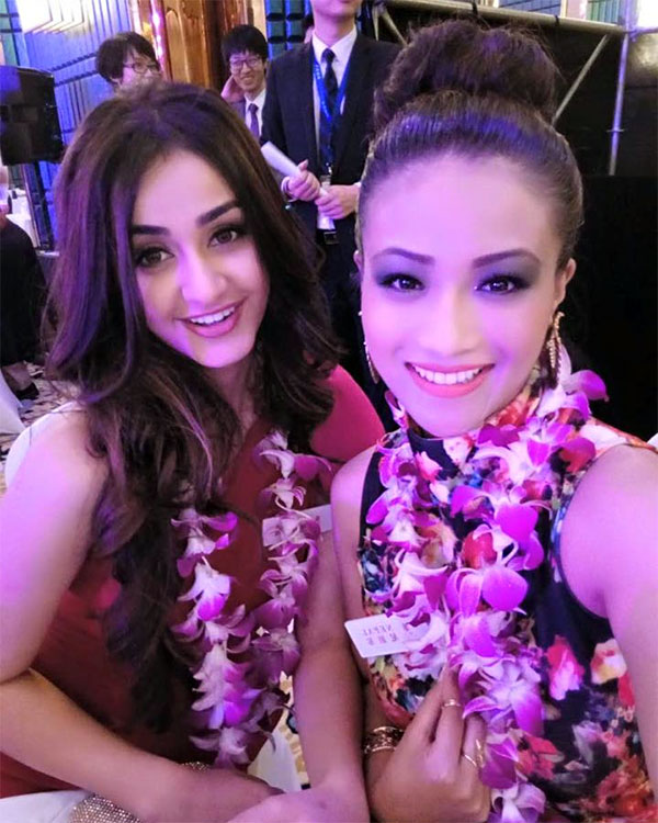 “I am super excited to introduce you to my roommate and neighbours on the world map, Miss India Aditi Aryal. All smiles both of us shining at the Miss World Journey 2015. Selfies together” – Evana Manandhar Face Book