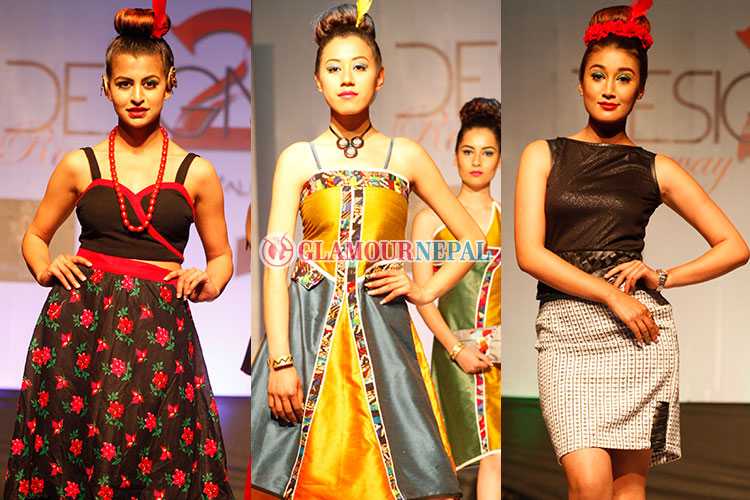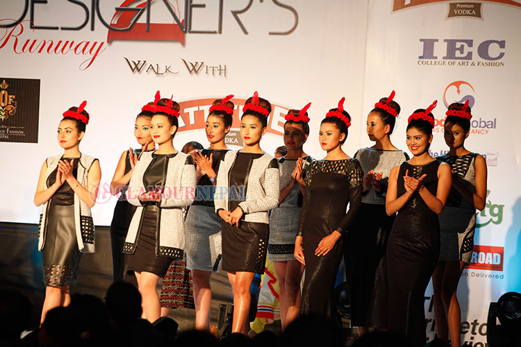 Designer duo Rikesh Kasti & Chandra Rajbanshi presented the collection inspired by Mithila art which had dresses mostly on A line, straight and fitting dresses. Black and White came alive on the runway through creation by designer duo Puja Gurung & Reshma Maharjan whose collection was inspired the Chess. The only designer to showcase his solo collection was Niraj Prajapati whose creativity seemed to be futuristic under the theme named Robobikes which had multi wear transformer clothes as the primary content of his collection. Designer duo Nirajana Rana Magar & Ishwar Khatri presented unique combination of gothic culture and Japanese Lolita fashion named as Gothlita.