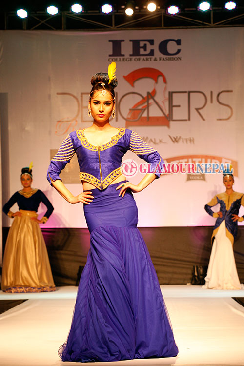 It was on 13th March 2015, 23 graduating students of IEC College of Art and Fashion unveiled their creativity through an exclusive show named as Designers Runway 2 at Hotel Hyatt Regency, Boudha. Though being a graduation show, the attires presented on the runway were not less than any professional designer’s creation. As per Ms. Shailaja Adhikary, the Managing Director of IEC group, this show was important for the students to make a mark in the fashion industry and to showcase what they have learned in three years span of time in Bachelor studies in fashion designing.