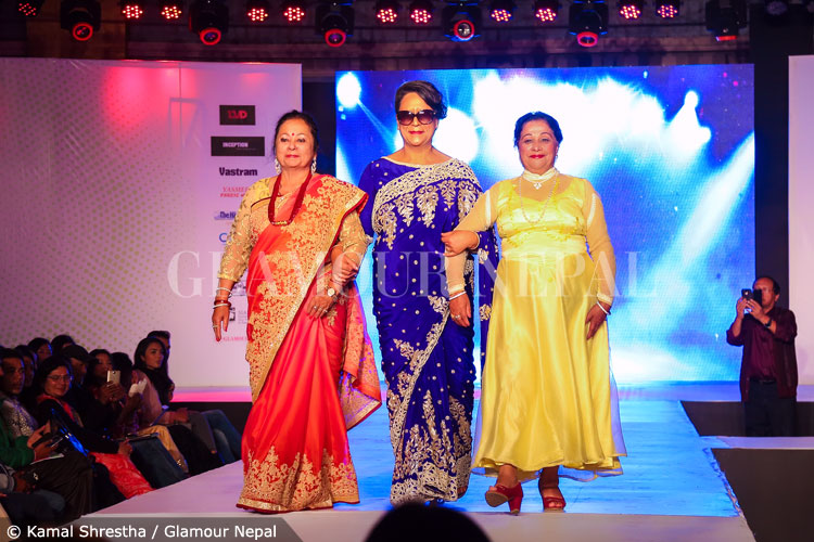 The event been Choreographed by Rojin Shakya had forty female and eight male models to carry the dresses and execute as beautifully as they were been created. The show also saw the walk of the Premiere fashion designer and Founder Principal of Namuna College, Mrs. Gyani Shova Tuladhar who walked with the Premiere actress of Nepali movie industry Mrs. Bhuwan Chand and senior artist Mrs. Laxmi Giri carrying the beautiful designs created by Mrs. Gyani Shova. The show finally got wrapped up with the walk of German based fashion designer Stella Maris Hafele as the show stopper.