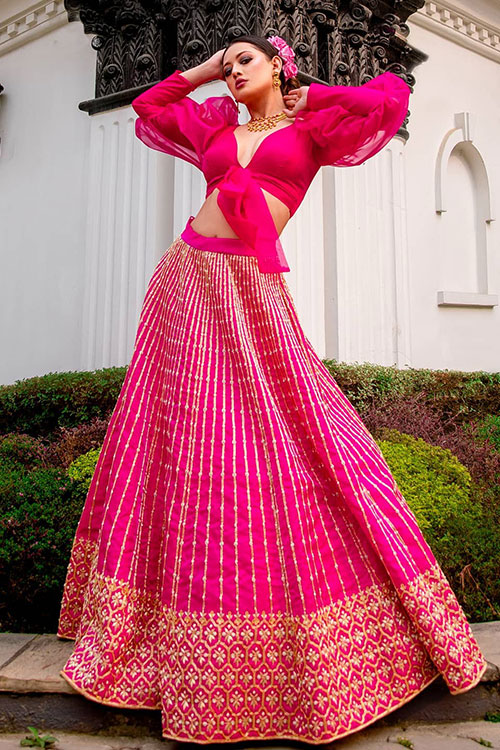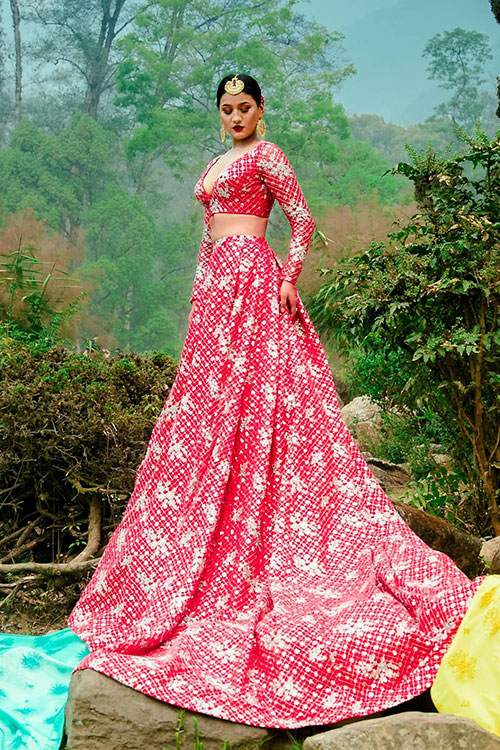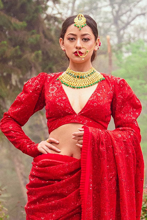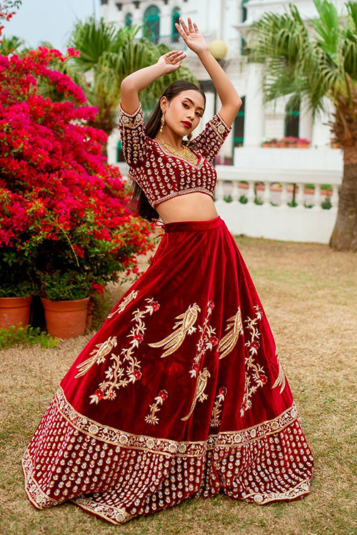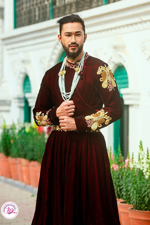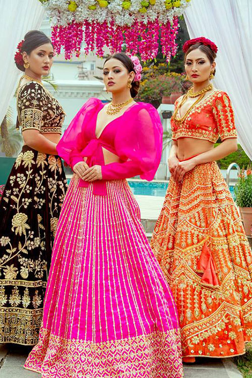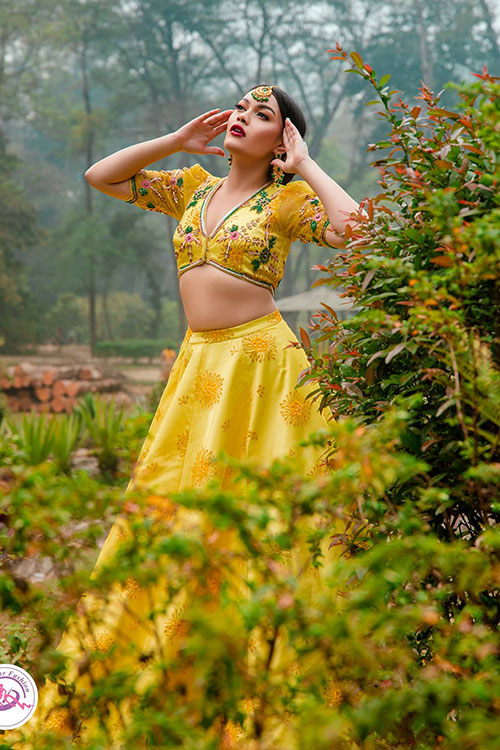 The exclusive photoshoot for the mesmerizing collection was been conducted at Hotel Shankar, Lazimpat. The shots were taken by Santosh Chhantyal and assisted by Omakshi Pande. The hair and make-up were been done by Atal Tumsing Magar and Nancy Magar. The shots were been taken with exclusive flower decorations by Floral events while the complementing jewelry for the designs was from Urja Jewels.