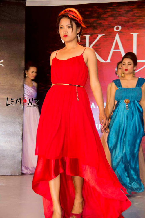 The show stopper for this sequence was Amelia Rose Hilary, the grand daughter to sir Edmund Hilary. The fashion sequences featured the fashion designing students of Namuna college of fashion technology and the contestants along with winners of miss jyapu pageant 2013 organized by Nasa Mandal. The fashion show and dresses besides being human wear was been designed by the designers of Namuna college whereas show choreography was been done by Rojin Shakya.