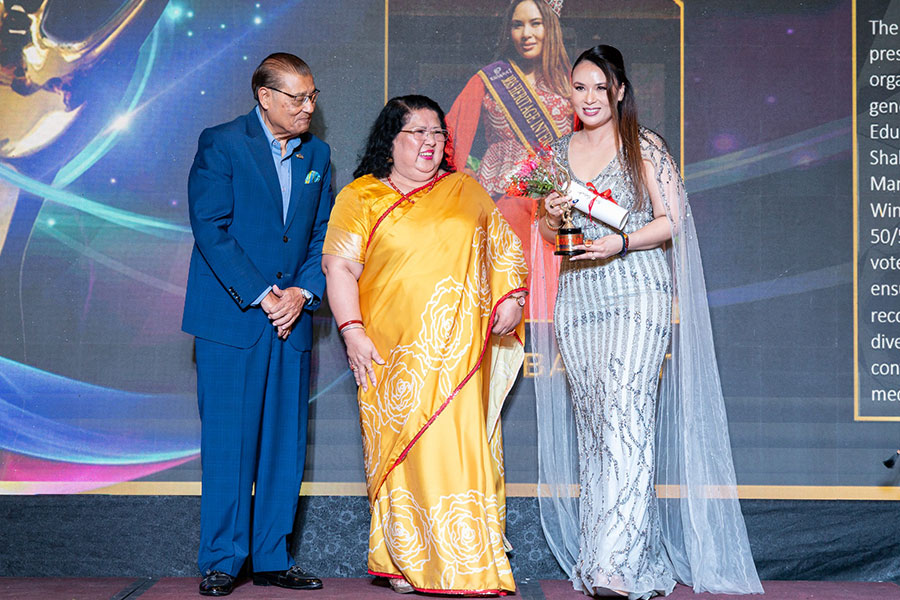 The awards also spotlighted inclusivity and advocacy. Parakram Rana was honored with the LGBTQIA+ Changemaker Award for his fearless authenticity and role in advancing LGBTQIA+ visibility. The Miss Nepal North America Organization – USA was recognized with the Global Event Excellence Award for its consistent dedication to organizing one of the most prestigious international pageants representing Nepal and its diaspora. Angel Lama, Nepal’s trailblazing transgender beauty queen, was awarded the Trailblazer in Inclusive Pageantry & Advocacy Award for her inspiring journey and contributions to social inclusion and sustainable fashion.