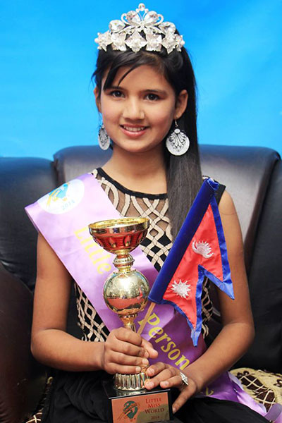 Earlier Garima Gyawali was been the winner of 4th Little Miss World Nepal 2014 organized by Nepalese Council. After winning this title award she represented Nepal at 14th edition of Little Miss World pageant held from 28th September till 4th of October at Antalya, Turkey.