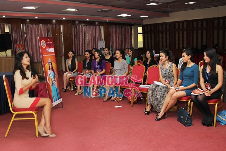 Glamour Nepal, Kathmandu – Every day is being learning day for the nineteen beautiful participants of Fanta the Hidden Treasure Miss Nepal 2014. In this process, Miss Nepal 2013, Ishani Shrestha was been caught among our beautiful ladies at Prithvi Hall of DECC located at United world trade center, Tripureshwor, where the grooming process of this year’s miss Nepal competition is being conducted. The participating girls of Fanta the Hidden Treasure Miss Nepal 2014 were found excited to see Ishani Shrestha among them. The girls were equally found taking keen interest in the words shared by Ishani regarding her experience both at miss Nepal 2013 and miss world 2013. The girls were found equally impressed and encouraged with the story told by Ishani. We hope the girls might have figured out what it would require to be noticed and how it could be made possible to happen. Possibly, some secrets about how to be the winner.