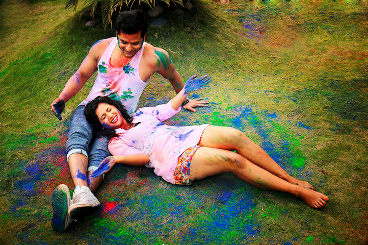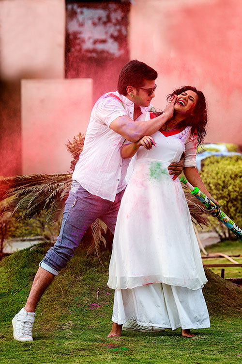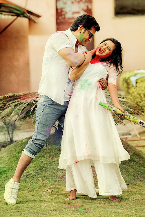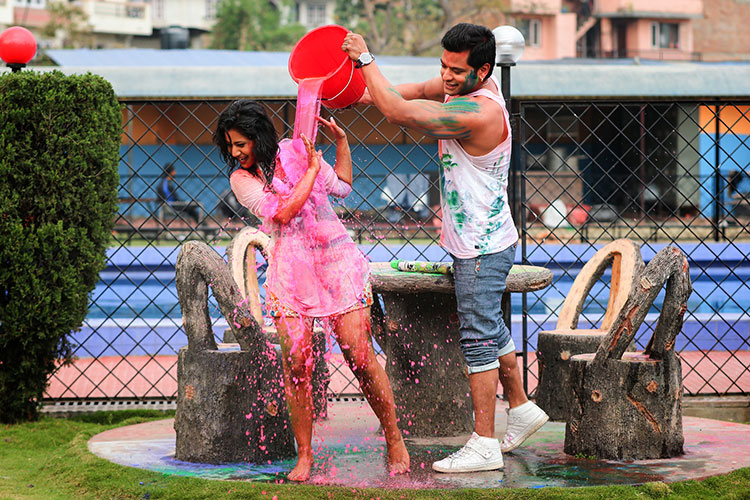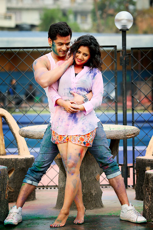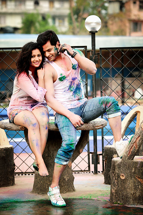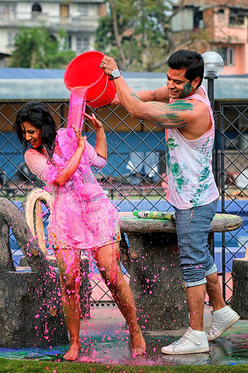 Actress Keki Adhiakri and Actor Sabin Shrestha Holi Pictures | Photo by Mahesh Pradhan | Published on Kantipur Saptahik on 18 March 216.