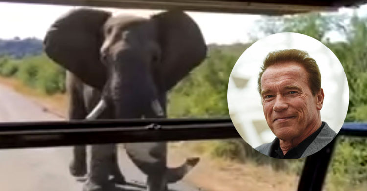 Arnold Schwarzenegger films terrifying moment massive wild elephant CHARGES at his car.