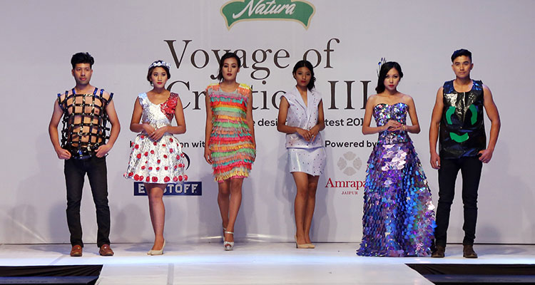 From the theme of recycle, reuse and reinvent the event explored the journey of creativity inspired by party mood, romance, red carpet, nature and its various elements, shades fire, spring season and many others. The competition was been judged by the senior panel fashion designers; Mukta Shrestha, Yogendra Meher Bajracharya and Daljeet Kaur Sudan.