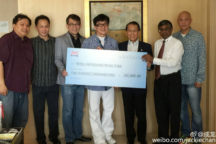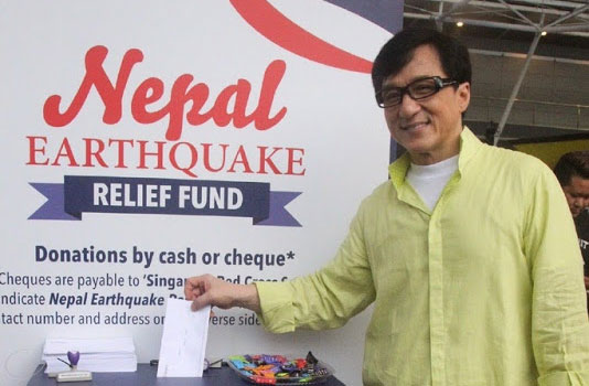 Hollywood star Jackie Chan has donated S$100,000 for victims of recent earthquake in Nepal. The actor attended a Nepal Earthquake Relief Fundraiser in Singapore on May 8 made the donation.