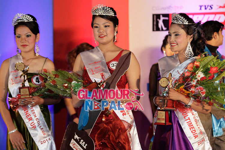 Glamour Nepal, Kathmandu – First edition of Miss Teen College event was concluded on 27th of February with Malusha Rana Magar being chosen as TVS Wego Miss Teen College 2014. The student of A level at British College Malusha along with the title crown received a brand new TVS Street scooty as the first prize award of the competition. Like wise the student of New Summit College, Shanti Maya Tamang was chosen as first runner-ups while the student of Orient College, Sabnam Bhandari took away the second runner-ups title. Both of them received cash prize of rupees twenty five thousand and fifteen thousand respectively. The event organized by season media saw 34 teenage girls competing for the main title awards. The event was been choreographed by Rojin Shakya and showcased at Rastriya Naachghar, Jamal, Kathmandu.
