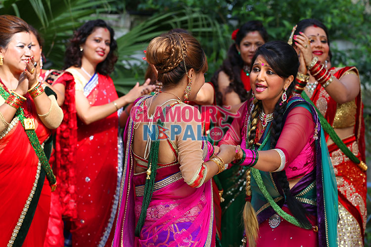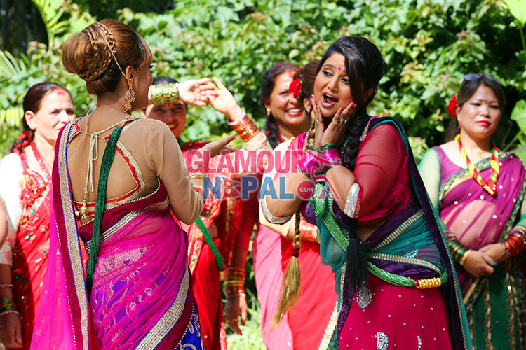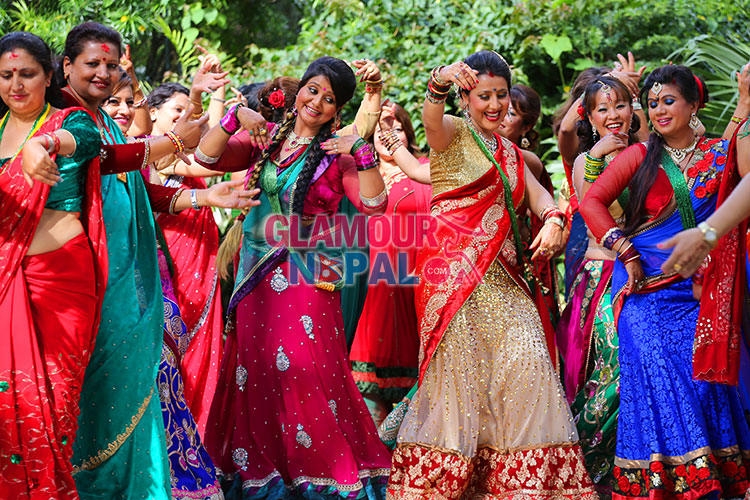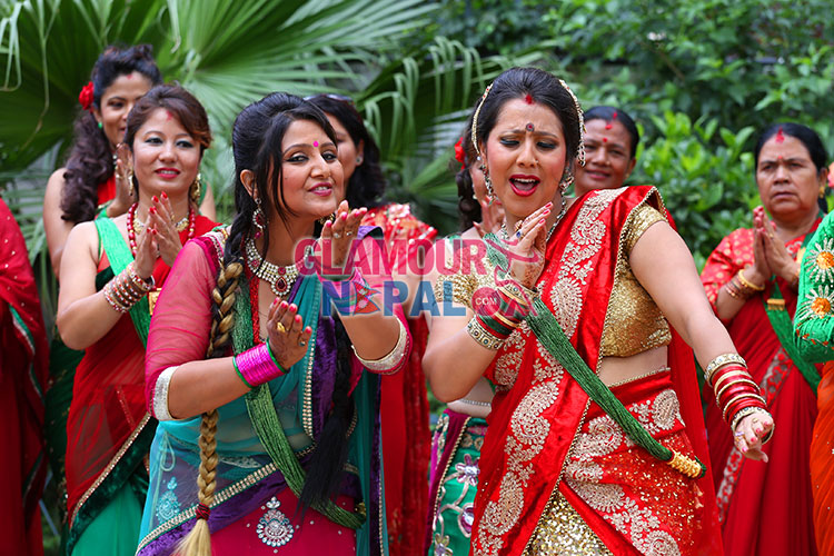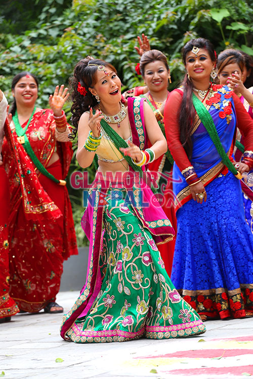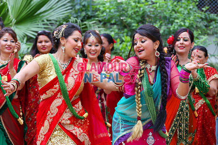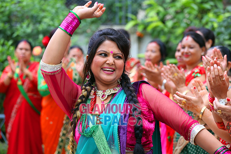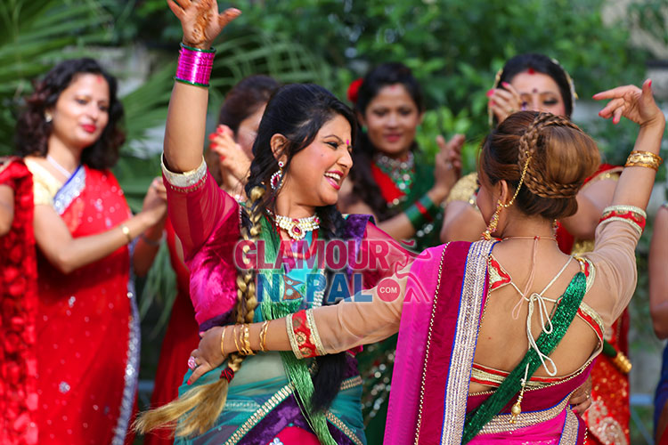 Manju Poudel’s Teej Song Shooting Images | Featuring: Deepa Shree Niraula, Kabita Khadka, Manju Poudel and Friends | all Images by Kamal Shrestha / Glamour Nepal