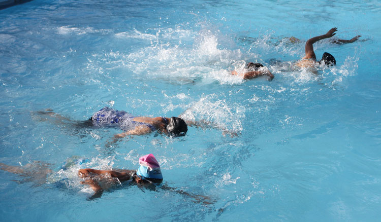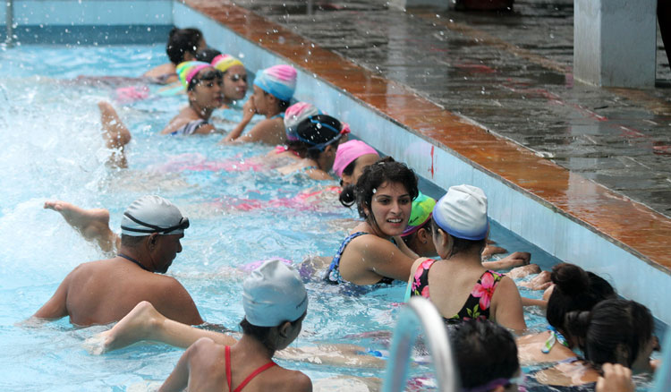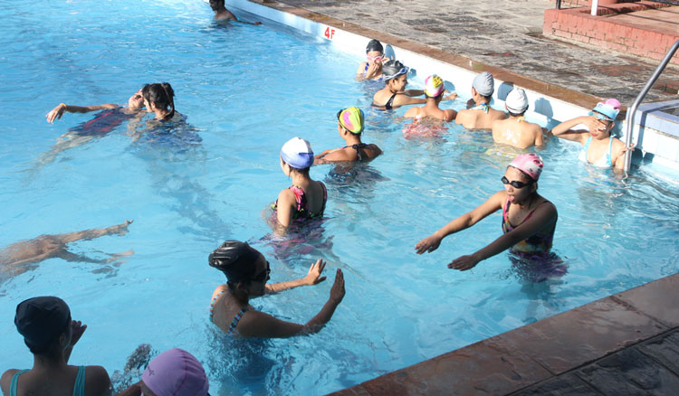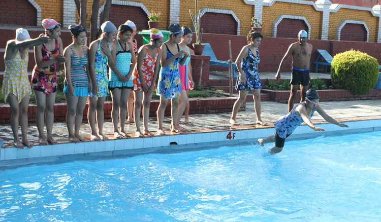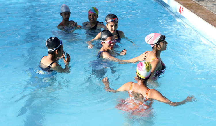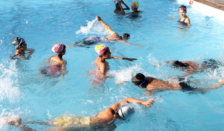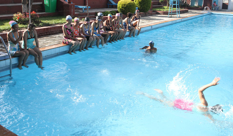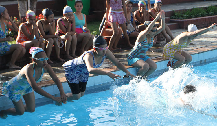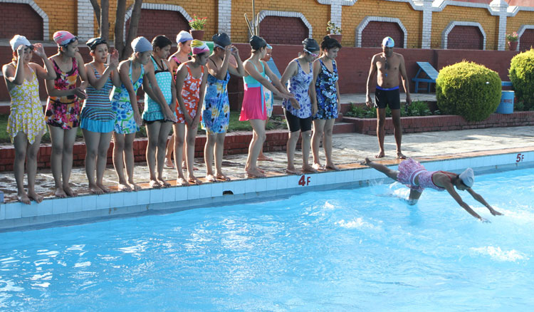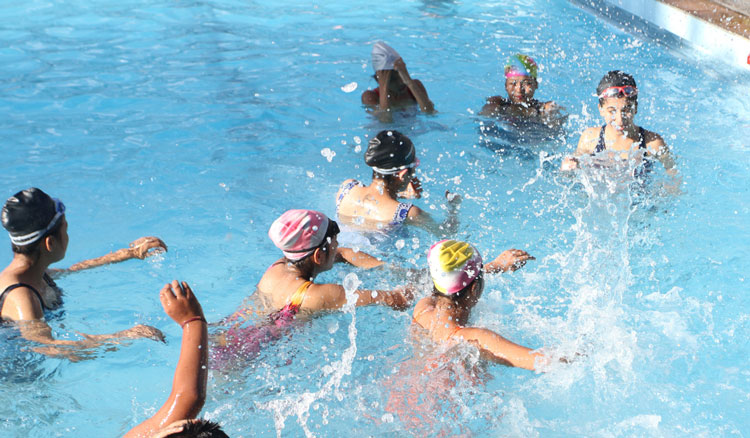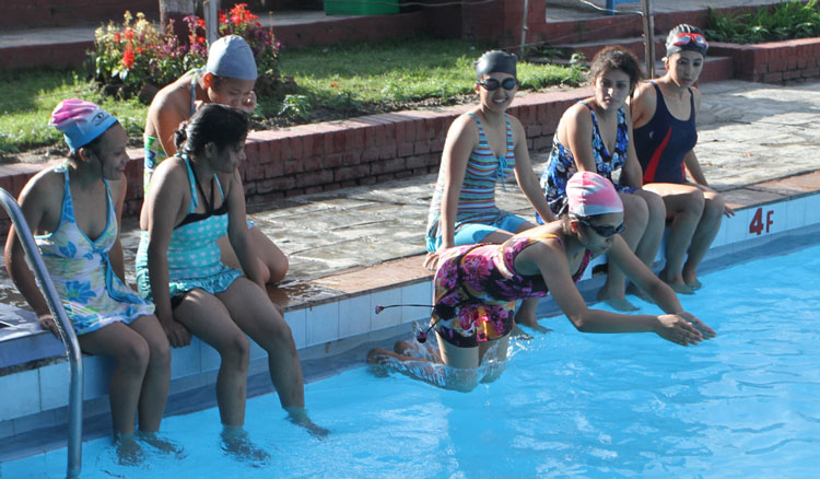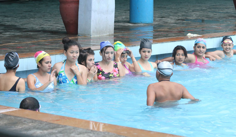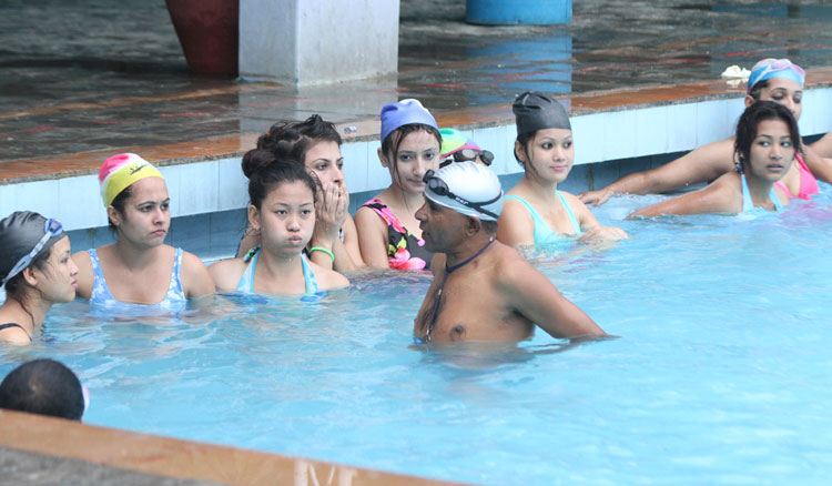Miss E-College contestants are having fun learning the swimming skills at Mahendra Police Health club. Trying out to stand and walk on the high heels confidently might be quitted tired some task but with the splashes in swimming pool, the girls were found relaxed and refreshed. All Images Courtesy: Season Media