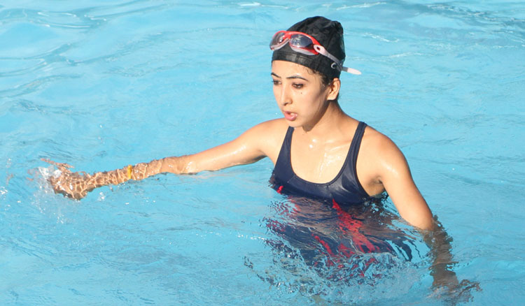 Glamour Nepal, Besides regular choreography and grooming session twenty five contestants of fifth season of Miss E-College event are been experiencing various activities to transform themselves into a winner. In that regard the girls are having fun learning the swimming skills at Mahendra Police Health club. (Click here to View Photo Gallery) Trying out to stand and walk on the high heels confidently might be quitted tired some task but with the splashes in swimming pool, the girls were found relaxed and refreshed.
