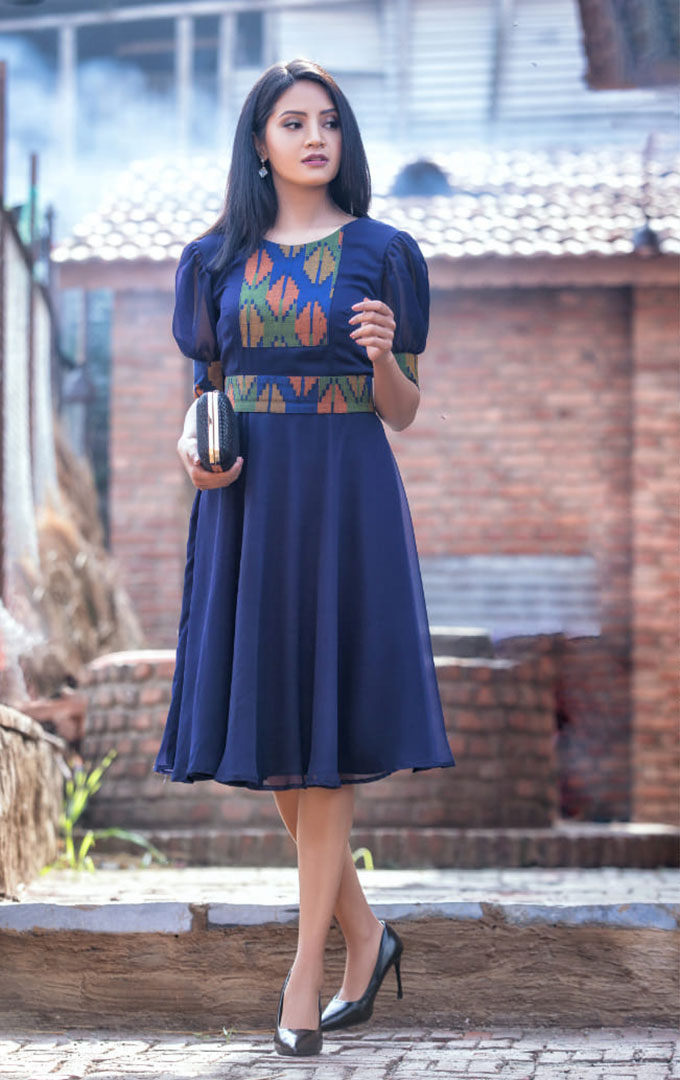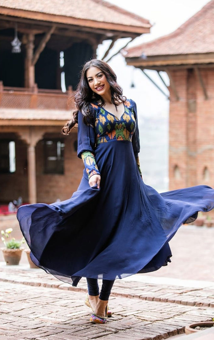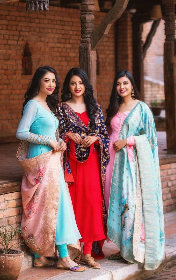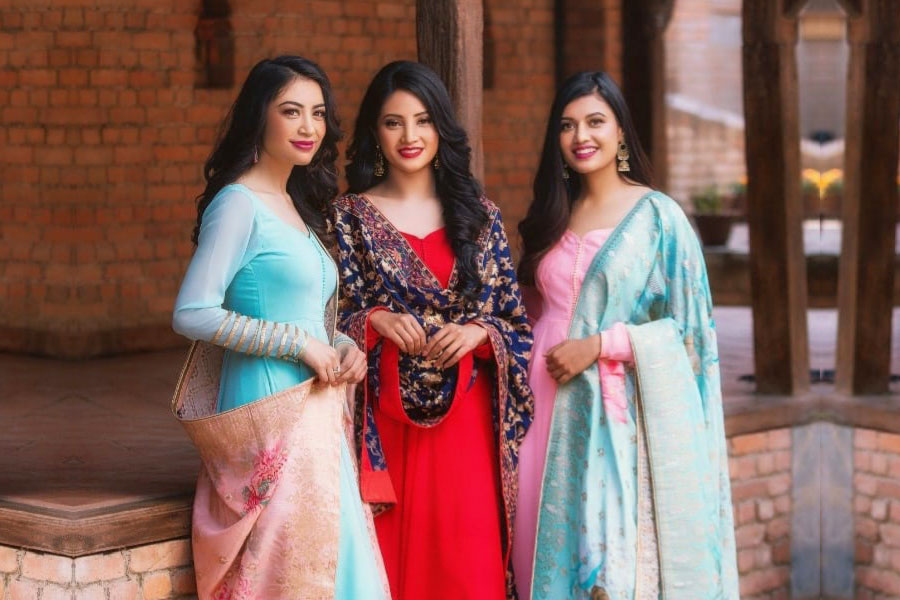 The beauty, elegance, and grace of mesmerizing fusion wear of Dhaka by Muku Designs from Fashion Designer Mukta Shrestha has been spotted on the beautiful wearers, the achievers of Miss Nepal 2020. Miss Nepal World 2020 Namrata Shrestha, Miss Nepal Earth 2020 Supriya Shrestha, and Miss Nepal Supranational 2020 Shimal Kanaujiya were been caught in exclusive wears created in the blend of various Dhaka prints and patterns. The dresses included Sari, Kurta, Anarkali, formal knee-length, and One-piece dresses. The shots were taken at Sasa Twa Kirtipur and were been captured by Fashion Photographer QB Maharjan / Indepth Photography while the enhancement of beautiful ladies with the make-up was been performed by Make-up artist Swastika Rajbhandari.