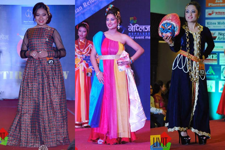 Inspired by the colors and many major elements of Jatras and festivals of Newar community was seen beautifully crafted, used and embellished in every outfit flaunted on the stage. The show was all about the evaluation of contestant’s performance related to the best attire, the theme and design of the dress.