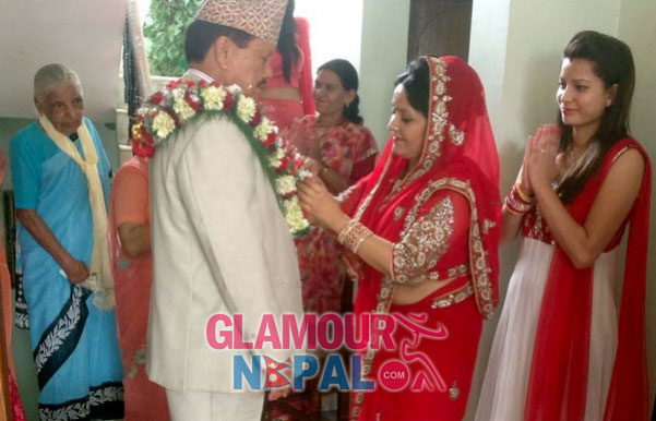 Mithila Sharma and Motilal Bohara Wedding Photos | Motilal Bohara (75 Years) engaged with Mithila Sharma (50 years) in Kathmandu on 5 July 2014 (2071 Asar 21).
