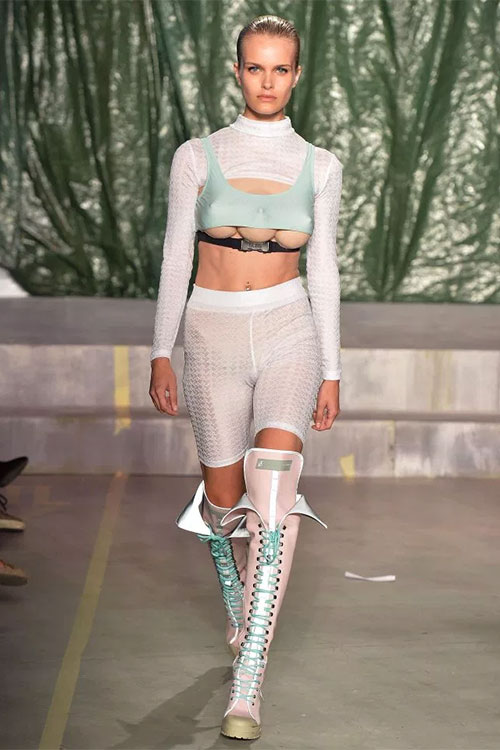 Among many of the bizarre fashion statements, the latest one to make news are the three-breasted models walking the runway at Milan Fashion Week. Italian streetwear brand God Can’t Destroy Streetwear (GCDS) sent two of its models wearing a prosthetic third breast, which can be clearly seen under their cropped sports bra.