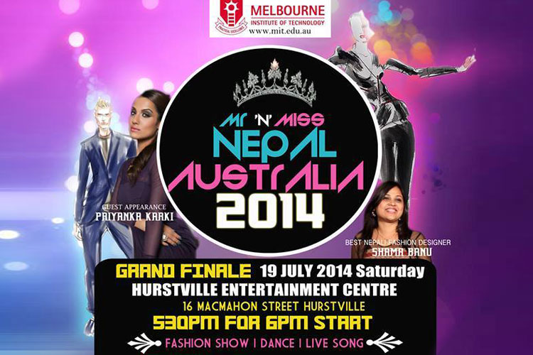 Glamour Nepal, Kathmandu | 19th July 2014 would be a grand coronation night for Melbourne Institute of Technology Mr. and Miss Nepal Australia 2014. The event is to be showcased at Hurstville Entertainment Center where 14 female and 8 male contestants will be in the race to grab the major title awards.