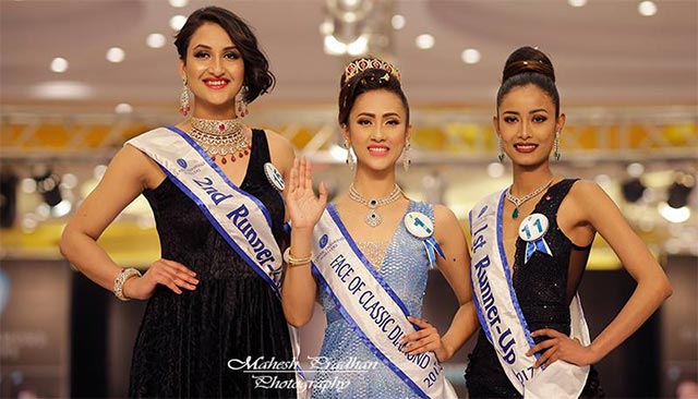 As the winner of ‘Face of Classic Diamond 2017’ Muna received One Lakh rupees award, (Rupees 50,000 cash & Rupees 50,000 worth jewelry). The first runner-up Soni received Rupees 50,000 award, (Rupees 25,000 cash & Rupees 25,000 worth jewelry whereas the second runner-up Soru received Rupees 25,000 award, (Rupees 12,500 cash & Rupees 12,500 worth jewelry).