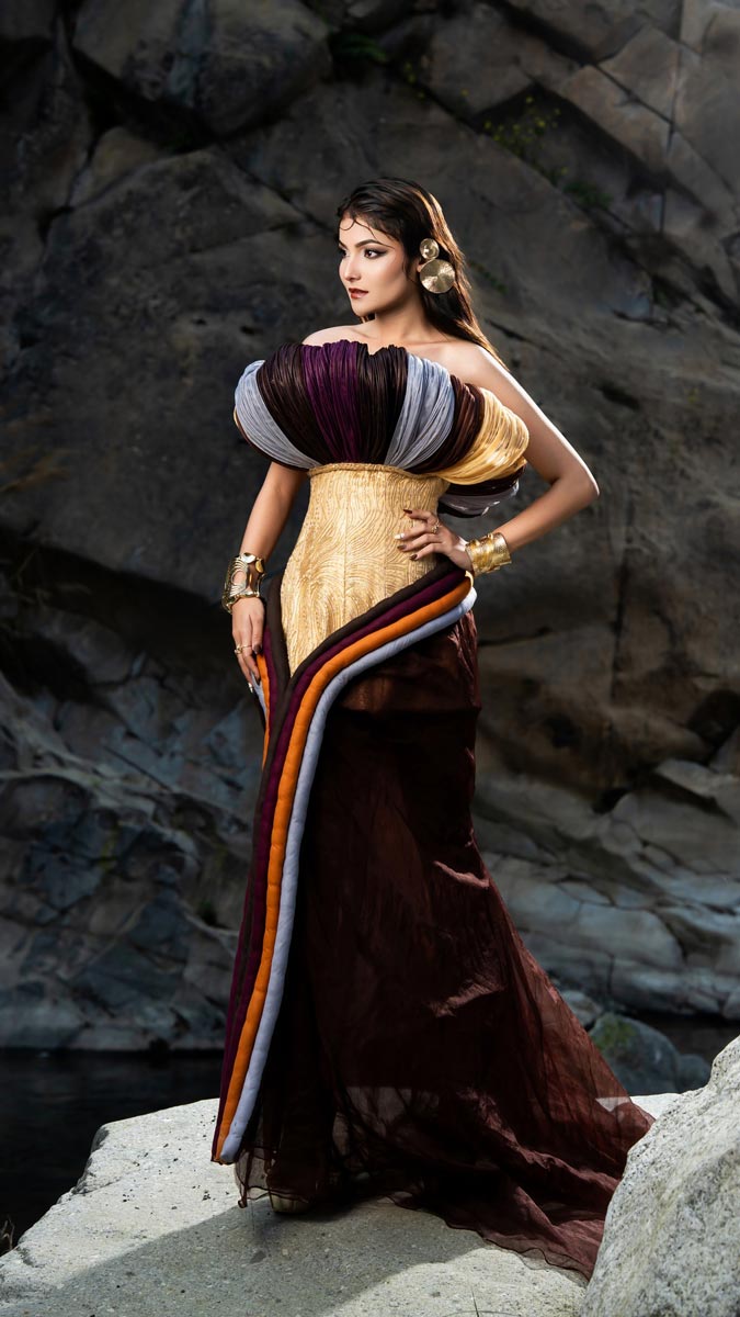 “Iridescent Shells: Armor Softened by Elegance,” will showcase creations by Menuka Roka, Ashmita Shrestha, Juna Thapa, Aeesorya Pun, Amita Thapa Magar, Smarika Timilsina, Puspa Kandel, Kashish Shrestha, Kabita BK, and Sushmita Ghising.
