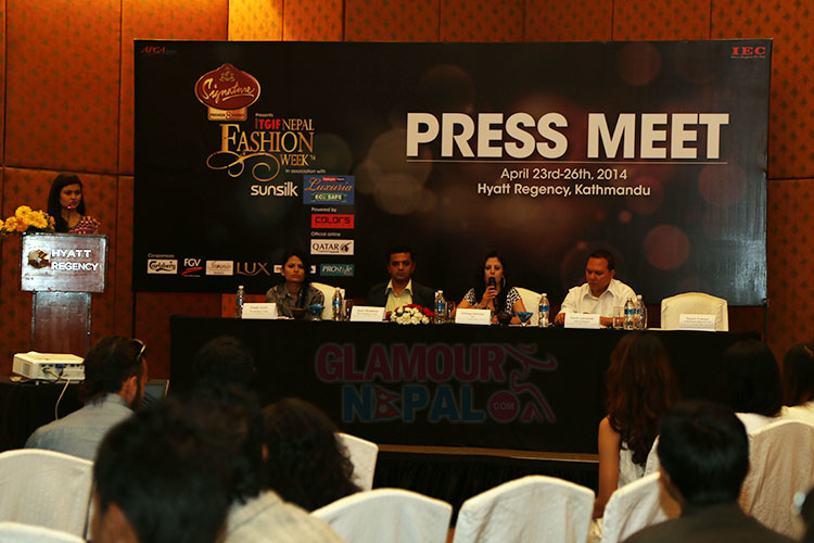 Glamour Nepal, Kathmandu – Signature presents The Himalayan Times TGIF Nepal Fashion Week 2014 is on the final touch up. May it be the designers, models, hair dresser, make-up artist and other technical crew on and off stage, all of them are all set to open this season of Nepal Fashion week in big and stylish way. Regarding this, APCA events the organizer and IEC designing institute, the partner for this biggest fashion extravaganza put their final words regarding the event to be showcased from 23rd of April till 26th of April 2014. The press meet was held at Hyaat Regency, the venue where the fashion week will be showcased.