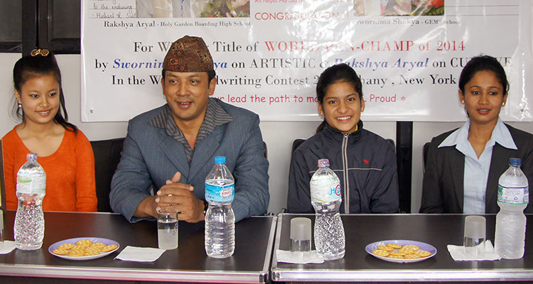 Prior to this in the World Handwriting Championship 2014, two Nepali students Swornima Shakya and Rakchya Aryal represented Nepal. Both of them were the winners in different categories. Swornima was the winner in the category called Artistic Handwriting whereas Rakchhya was the winner ing the category called Cursive Handwriting.