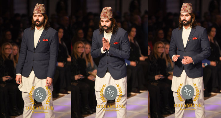 This season of Couture Fashion Week also included a dazzling showcase of art, culture and design from Nepal. It was the 13th of February 2016 when Renowned Nepalese model and entertainer Dipak Ghimire walked on the runway during fashion show at Couture Fashion Week New York. Dipak leaded fashion show wearing the traditional National attire worn by Nepalese males named Daura Suruwal. Then near about dozen of international female models took the runway showcasing the designs inspired by art, culture and nature of Nepal with a motive to promote tourism of Nepal. The collection having dresses made out of Nepali fabric was been presented by New York based Nepalese company Rising International company. This fashion show was jointly presented by Couture fashion week and World fashion parade.