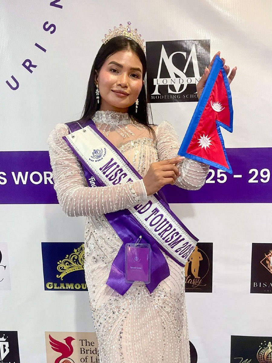 Joining her in this moment of glory, Garima Gurung from Belbari, Koshi Province, also excelled on the international stage. After securing the title of Miss Grand Tourism Nepal 2025 and winning the Miss Active Award at Miss Grand Nepal 2025, Garima represented Nepal with passion and charm. At Miss World Tourism 2025, she received two major recognitions: Miss World Tourism Popularity 2025 and Miss World Tourism Elegance 2025. Her poise, elegance, and commitment to promoting Nepal’s cultural diversity and natural beauty earned admiration from the global audience.
